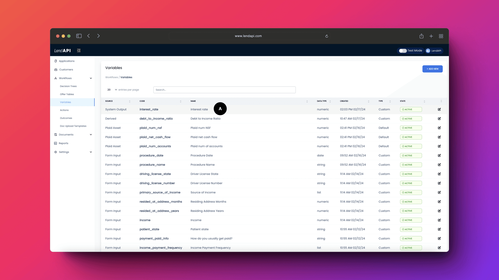 LendAPI Variable Builder allows you to build as many variables as you want for different purposes. A custom variable could be a variable used to be part of an online application which your end customers might enter. A custom can also be a variable pieced together by you from multiple other variables supplied by the online application or from a third party data integrator into LendAPI’s digital onboarding platform.