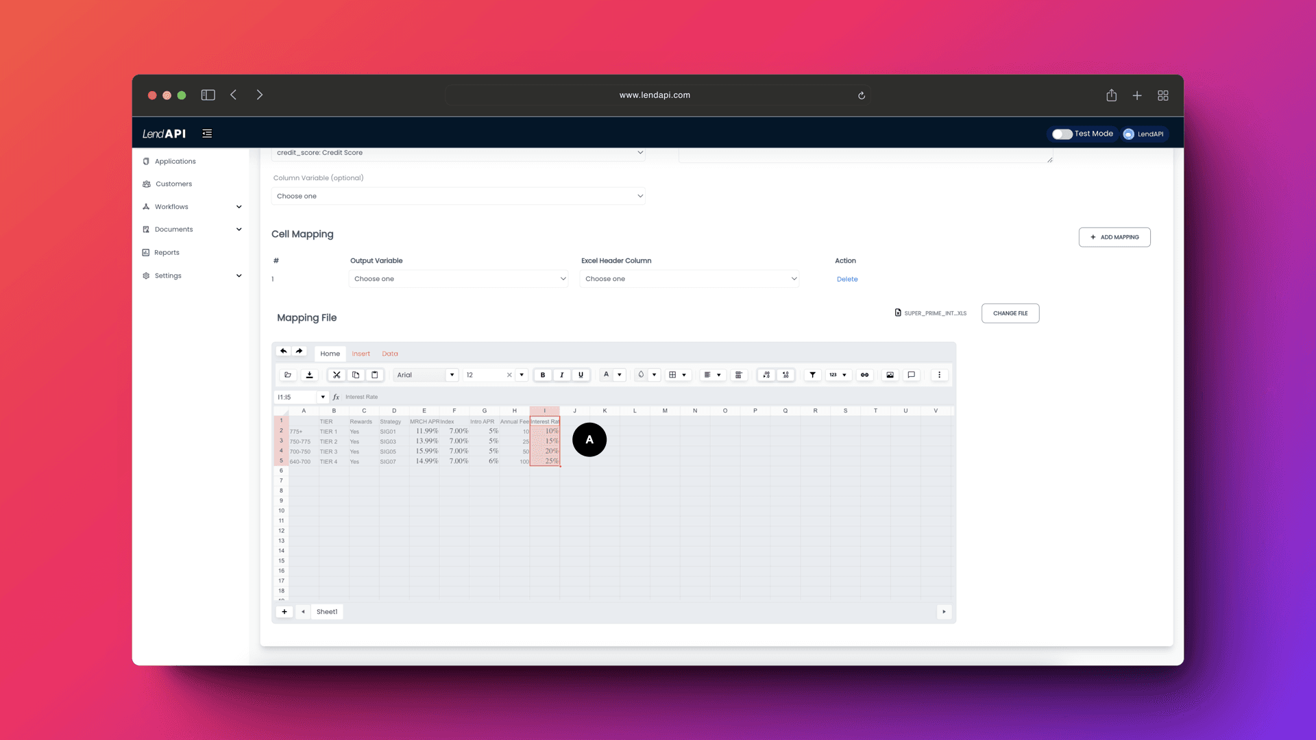A. On the left hand side of the Cell Mapping section are the variables you created using LendAPI’s Variable Builder. Early on in this launch document we created a variable called “Interest Rate”, you can see that the variable is on the list to be mapped to something.