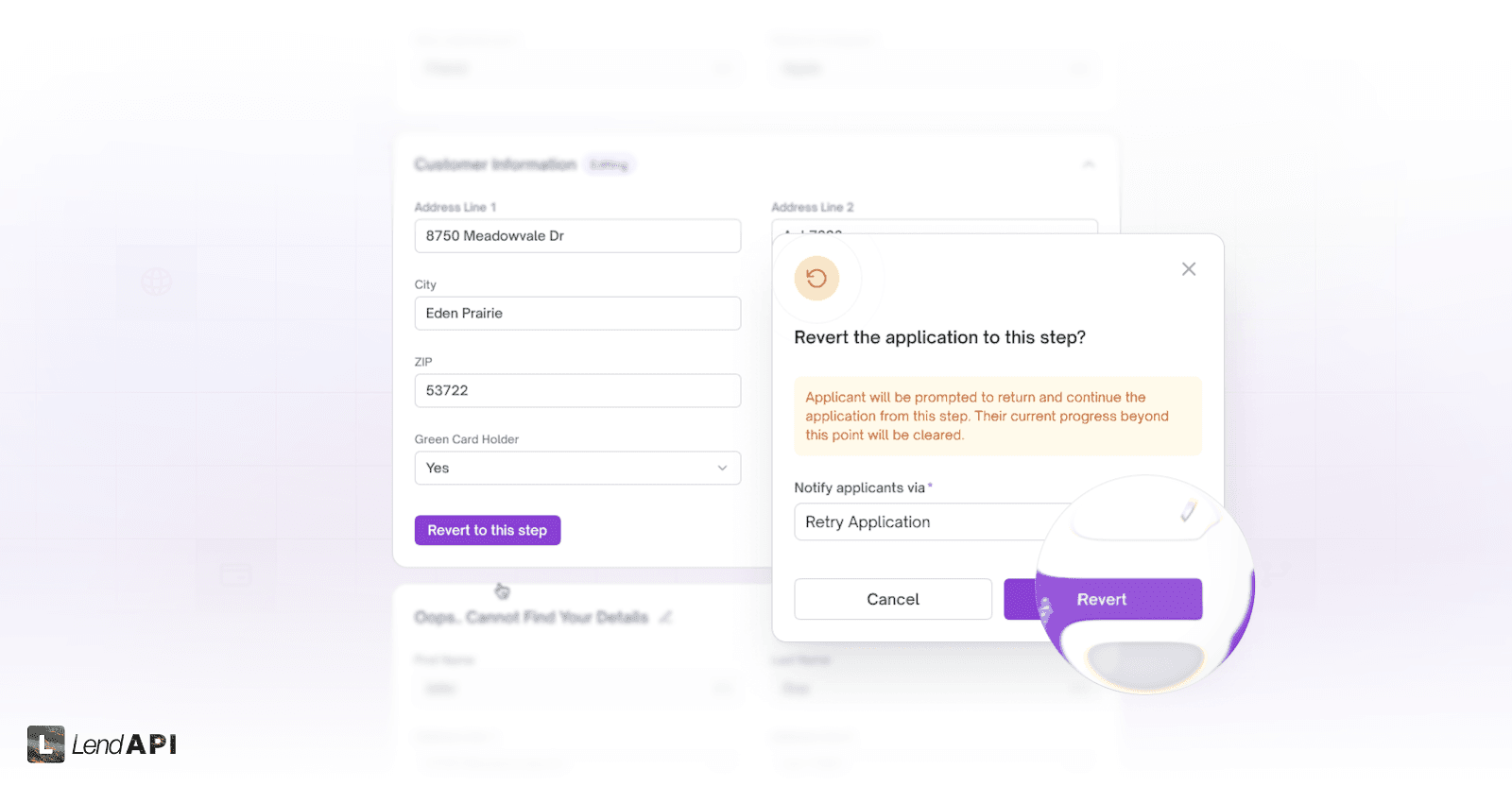 This reversion process will be very helpful for lenders to let their applicants know with an email to redo the application (but not all the way back to the beginning) and let them have another go at the application decisioning process.