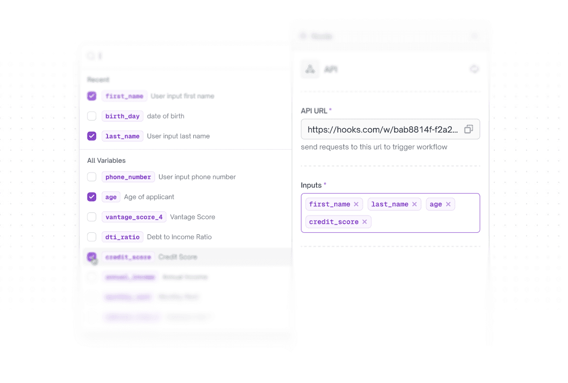 Define exactly what data enters a flow and what comes out the other side. Map fields to your LOS, partner systems, or downstream agents with full control over every payload and have every integration work exactly the way your business requires it to.